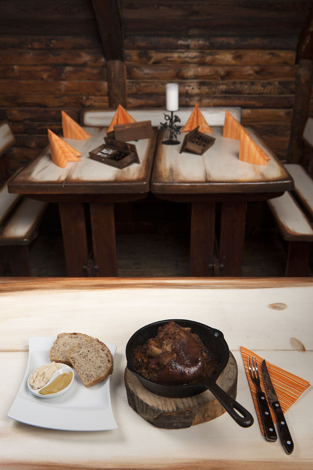 51,84 złGolonka z pieca chlebowego pieczona w aromatycznym sosie z duszonymi warzywami, podana z chrzanem, musztardą oraz pajdą swojskiego chleba